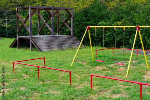 Fototapeta premium 徳島県美馬市は小星公園に設置されているブランコなどの遊具