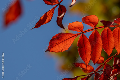 © Gottchin Nao, Obraz premium 青空と赤く色づいた葉