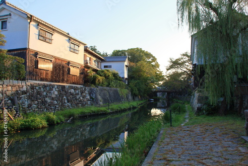 © nanohana, Obraz premium 朝の川沿いの観光地