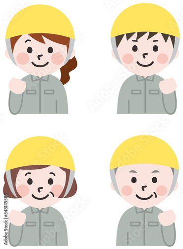 © shigotono, Naklejka premium やる気のあるヘルメットを被った作業員セット