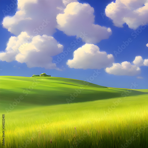 Fototapeta premium きれいな草原、空、雲。心地良い風景。
