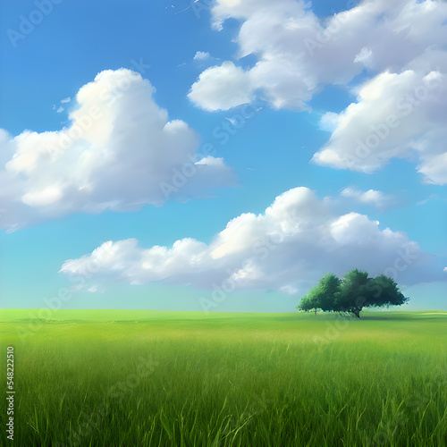 Fototapeta premium きれいな草原、空、雲。心地良い風景。