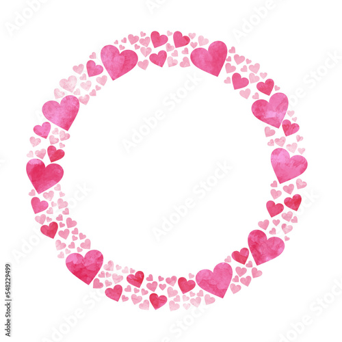 Obraz premium 水彩風ピンク色のかわいいハートの丸いフレーム素材