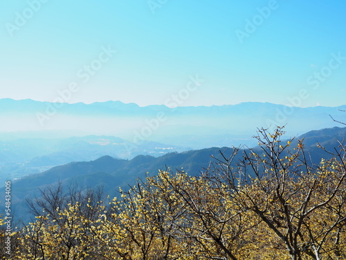 Obraz premium 蝋梅と秩父山地