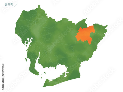 Obraz premium 水彩風の地図 設楽町