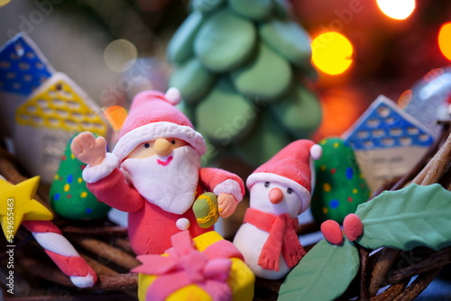 Obraz premium 蔓と粘土のクリスマスリース 手作りのクリスマス装飾
