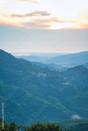 Fototapeta premium 早朝の青々と茂る大自然の山間部風景 タイ・チェンライ