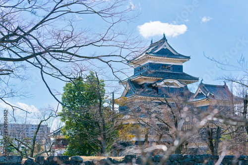 Fototapeta premium 冬の晴れた日に撮影した松本城と周りの木々