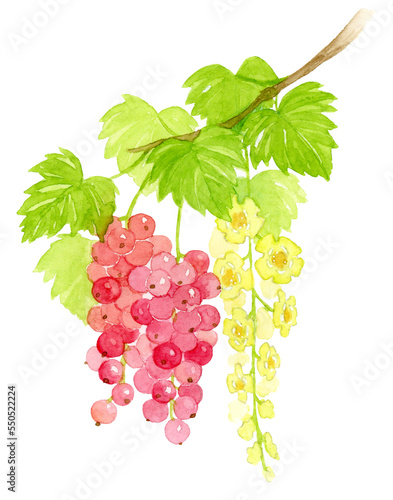 © 雨水立春, Obraz premium レッドカラントの花と実の水彩画