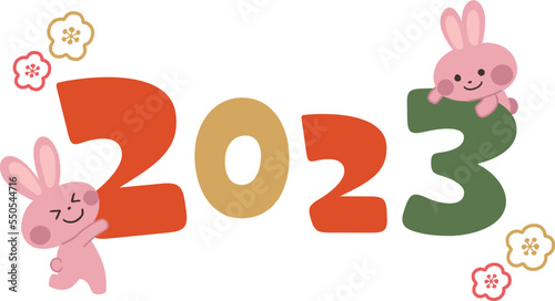 Obraz premium 2023年卯年 うさぎと年号の年賀状素材イラスト