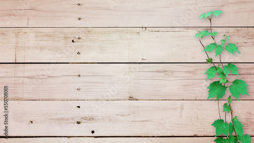 Fototapeta premium 木目背景とグリーン