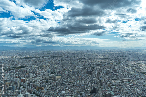 Obraz premium 大阪のあべのハルカスから見下ろす阿倍野の街並み