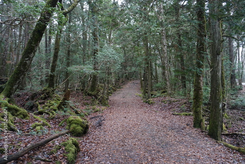 © cloudolivine, Fototapeta premium 林立する富士の樹海の木々と遊歩道