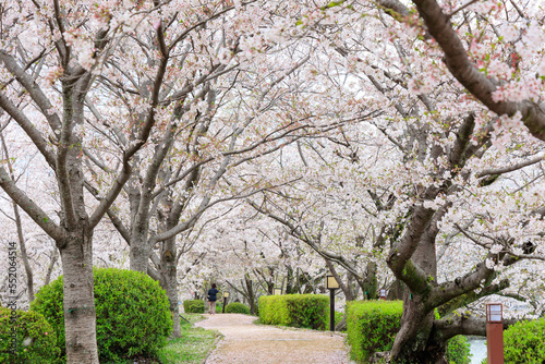 © walkingcow3039, Obraz premium 小城公園の桜道「佐賀県」
