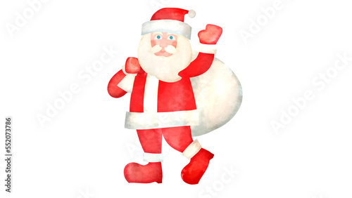 Obraz premium プレゼントが入った袋をかつぐサンタクロースの水彩風背景透過イラスト