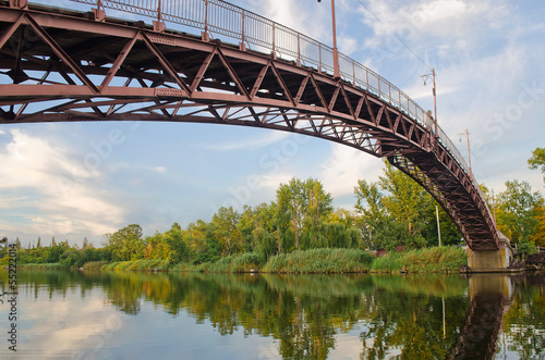 © vsegda22, Obraz premium Дугообразный, металлический пешеходный мост через реку