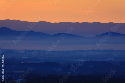 © yspbqh14, Obraz premium 岩手県花巻市 朝焼けの花巻市街地