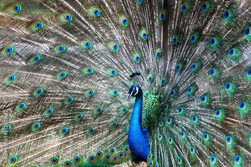 Naklejka premium 羽を広げたインドクジャク