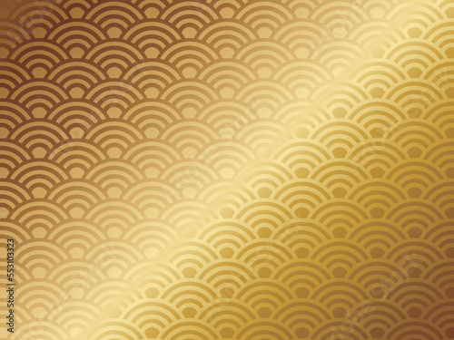 Fototapeta premium 青海波模様の背景 横位置 ゴールド