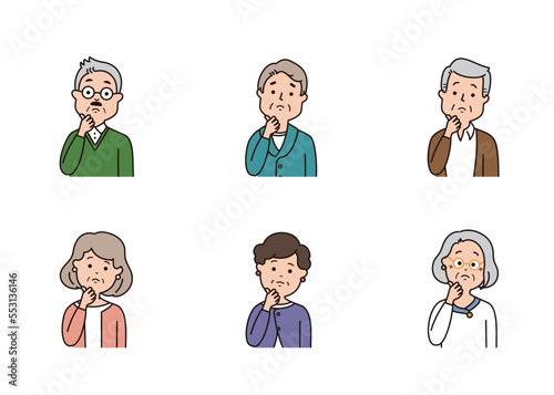 Naklejka premium シニアの表情アイコン 考える・悩む
