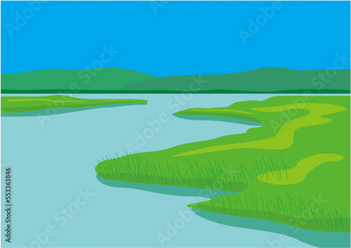 Obraz premium 夏の湿原のイラスト02