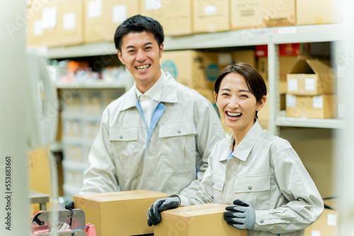 Obraz premium 作業着を着た日本人男女