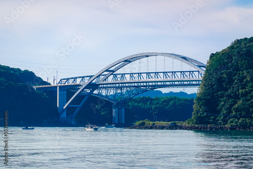 © WAWA, Obraz premium 三角西港の石積埠頭より天草五橋1号橋