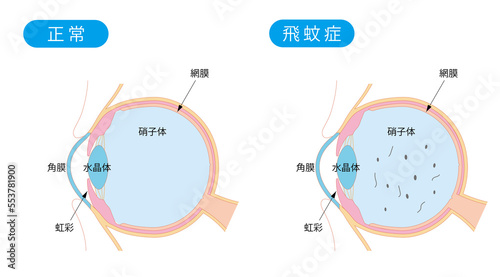 Naklejka premium 正常な目と飛蚊症の目の断面