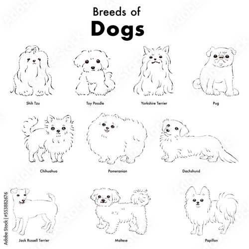 © Daphnia, Obraz premium シンプルでかわいい人気の小型犬種 手描き線画ベクターイラストセット
