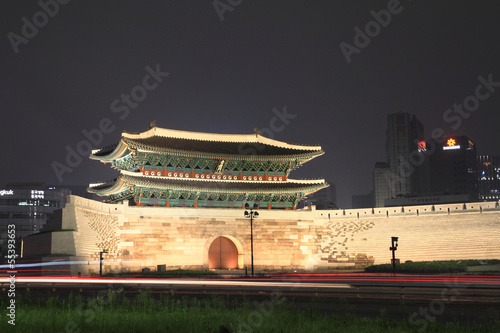 Obraz premium ライトアップされる南大門とソウルの街並み