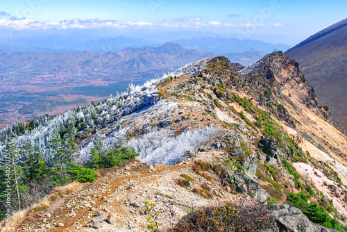 © mahalopuka, Fototapeta premium 寒波に凍りついた低木の霧氷(長野県・浅間山外輪山)