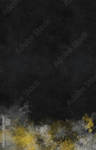 Obraz premium 背景素材 和紙と金銀の絵具 黒