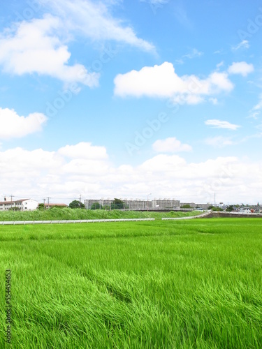 © smtd3, Obraz premium 風のある梅雨の晴れ間の近郊の青田風景
