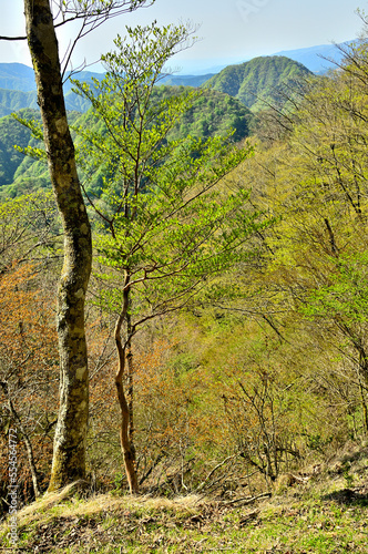 © Green Cap 55, Obraz premium 丹沢の甲相国境尾根 新緑の水晶沢ノ頭より箒沢権現山を望む 丹沢 甲相国境尾根 水晶沢ノ頭より左手前が善六山、右奥が箒沢権現山