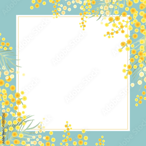 © Honyojima, Obraz premium ミモザのベクターイラストフレーム背景