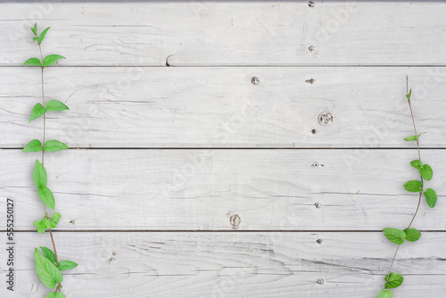 Fototapeta premium 木目背景とグリーン