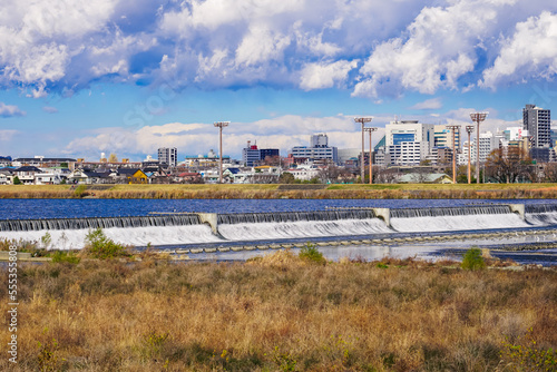 © WAWA, Obraz premium 多摩川に築かれた取水用ダム 二ヶ領上河原堰堤