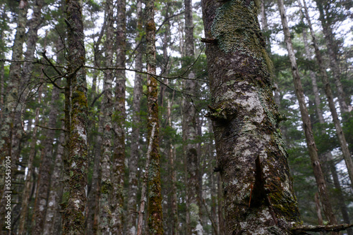 Obraz premium 蓼科山の景色 霧に霞む針葉樹林