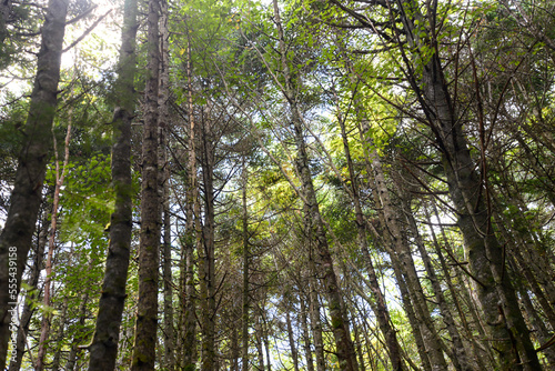 Obraz premium 蓼科山の景色 霧に霞む針葉樹林