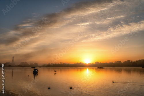Naklejka premium 茨城県水戸市 冬の仙波湖の朝