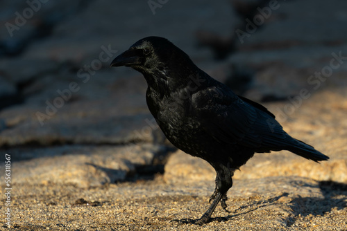 Obraz premium 石畳を歩くハシボソガラス