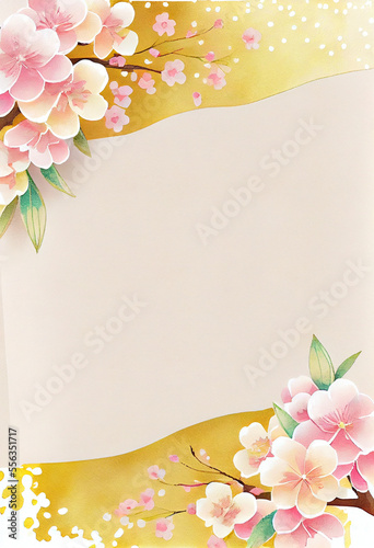 © ayagaki, Fototapeta premium 新春・成人式・卒業式の為の、桜をモチーフにした水彩メッセージカードフレーム