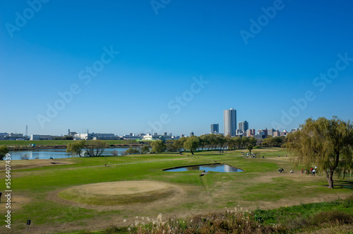 Fototapeta premium 金町駅の街並み〜東京江戸川の土手・河川敷から