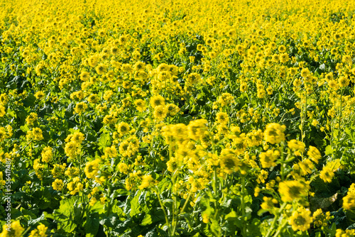 Obraz premium 春を待つ南房総 鴨川の菜な畑ロード 青空のもと満開の菜の花が輝く