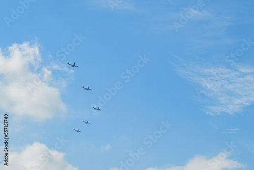 © Minato, Obraz premium ブルーインパレスのような5機の飛行機と青空