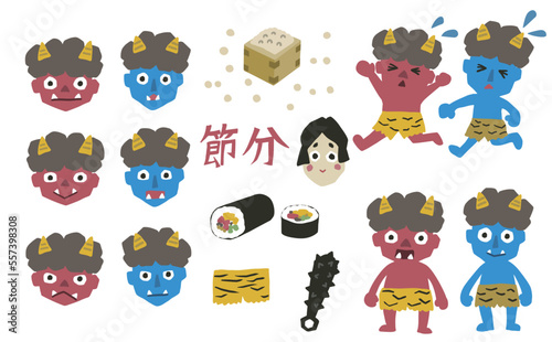 Obraz premium 節分赤鬼と青鬼のイラスト