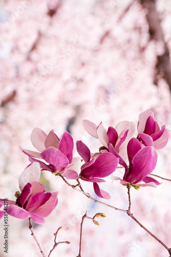 © EUNKYOUNG, Fototapeta premium 자주색 목련꽃과 벚꽃