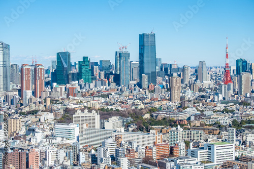 © Kazu8, Obraz premium 日本の首都東京都の東京タワーとビル郡