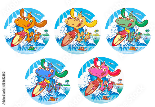 Fototapeta premium イヌ,キャラクター ,サーフィン,イメージ画