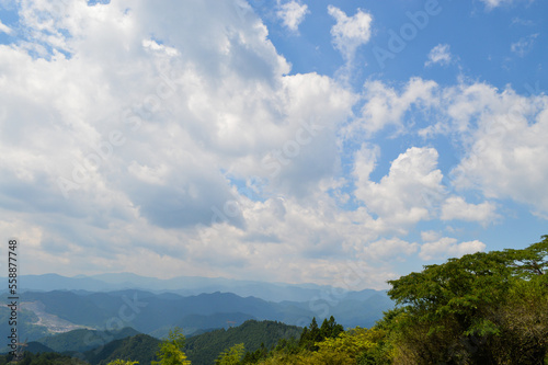 © Minato, Obraz premium 山頂からの曇りの空と山々の景色